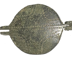Notes: Medieval English bronze mirror case half. Face is decorated