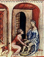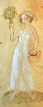 Pictured at right is a detail from an illumination of Mary being